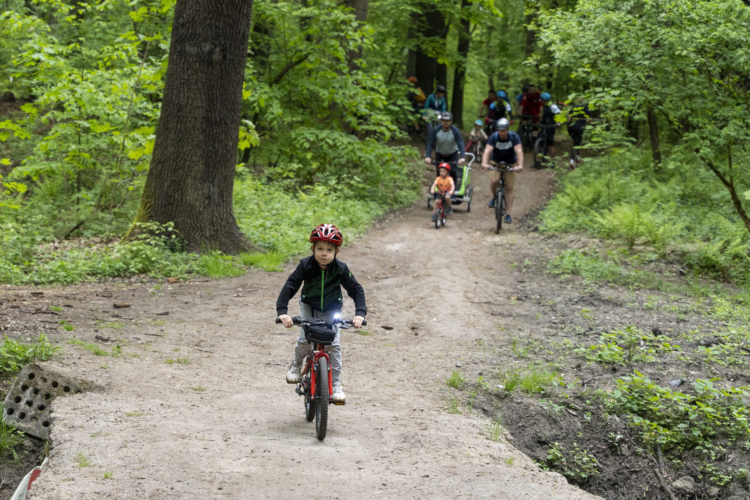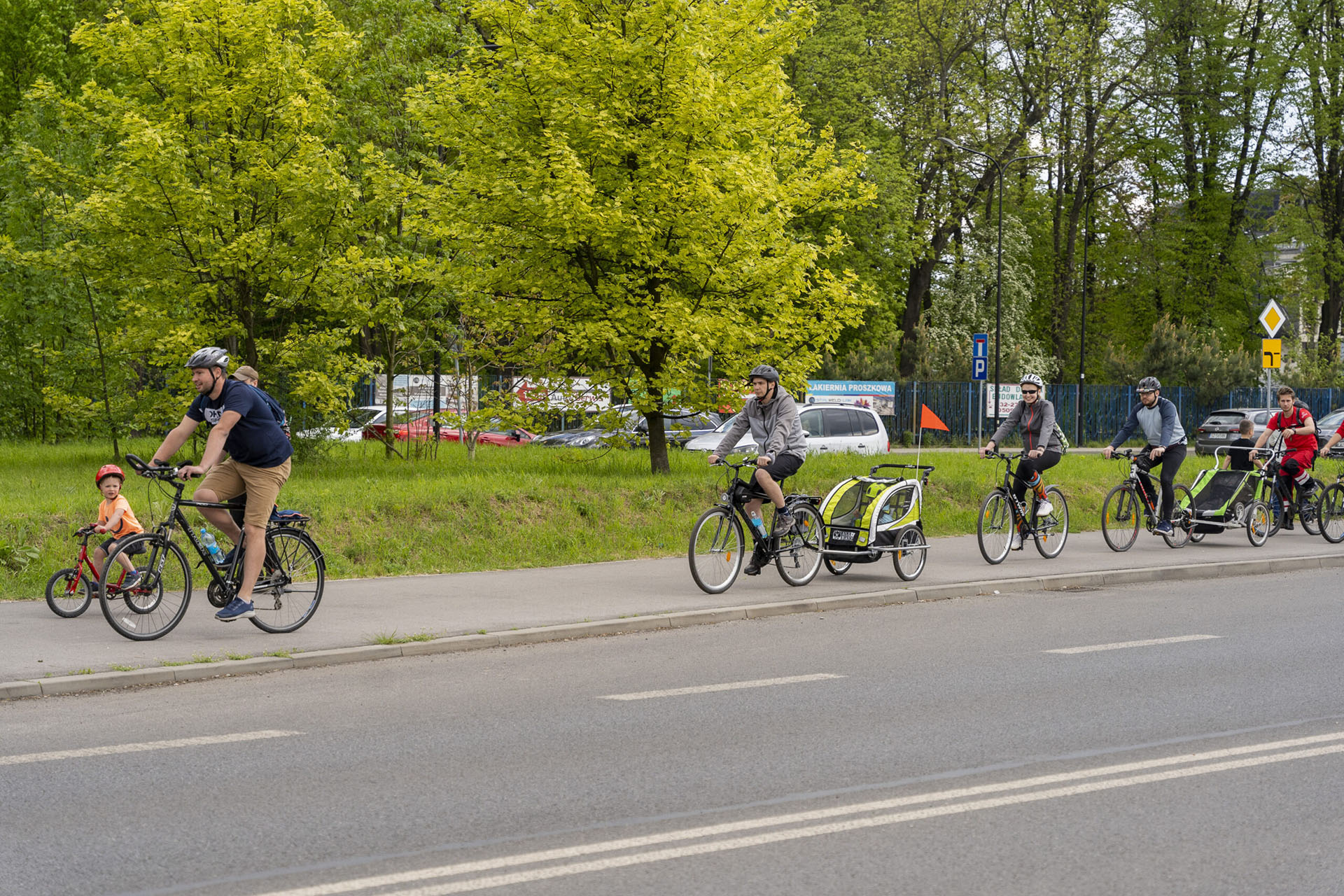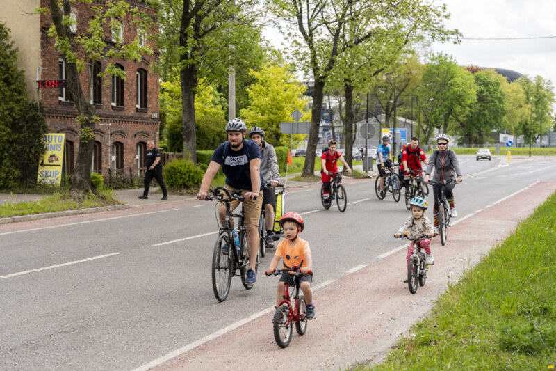 Family Cycling Rally or Riding a Bike through Zabrze