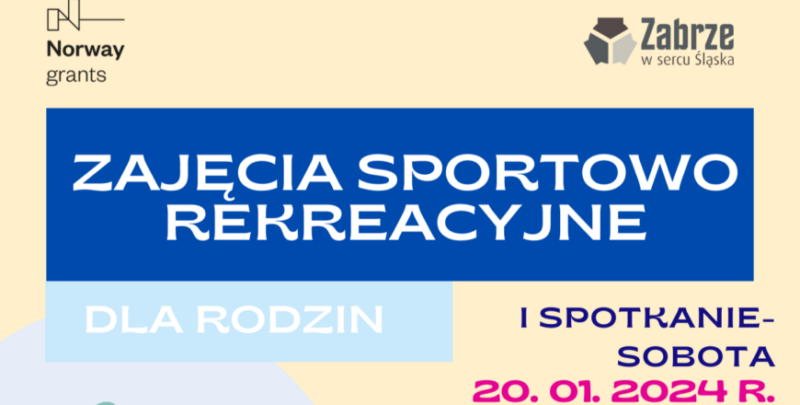 The Family Development Centre in Zabrze is launching another initiative as part of the City as Space for Development project. This time Zabrze families will be able to spend their time actively in sports-and-recreational activities, which will take place at the prof. Janusz Groszkowski School Complex No. 10 (26 Chopina St.). The first such meeting will take place on Saturday, January 20, from 10:00 a.m. to 2:00 p.m. Registration for those interested has just started. Family sports meetings are free of charge.
